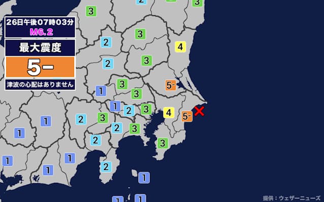 速報 千葉県東方沖で地震 千葉県と茨城県で最大震度5弱 宮城県で最大震度3 津波の心配なし Khb東日本放送 Yahoo ニュース